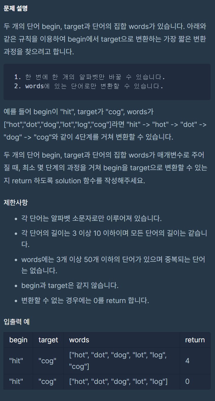 if target not in words: # target이 변환 대상에 없는 경우 불가 return 0